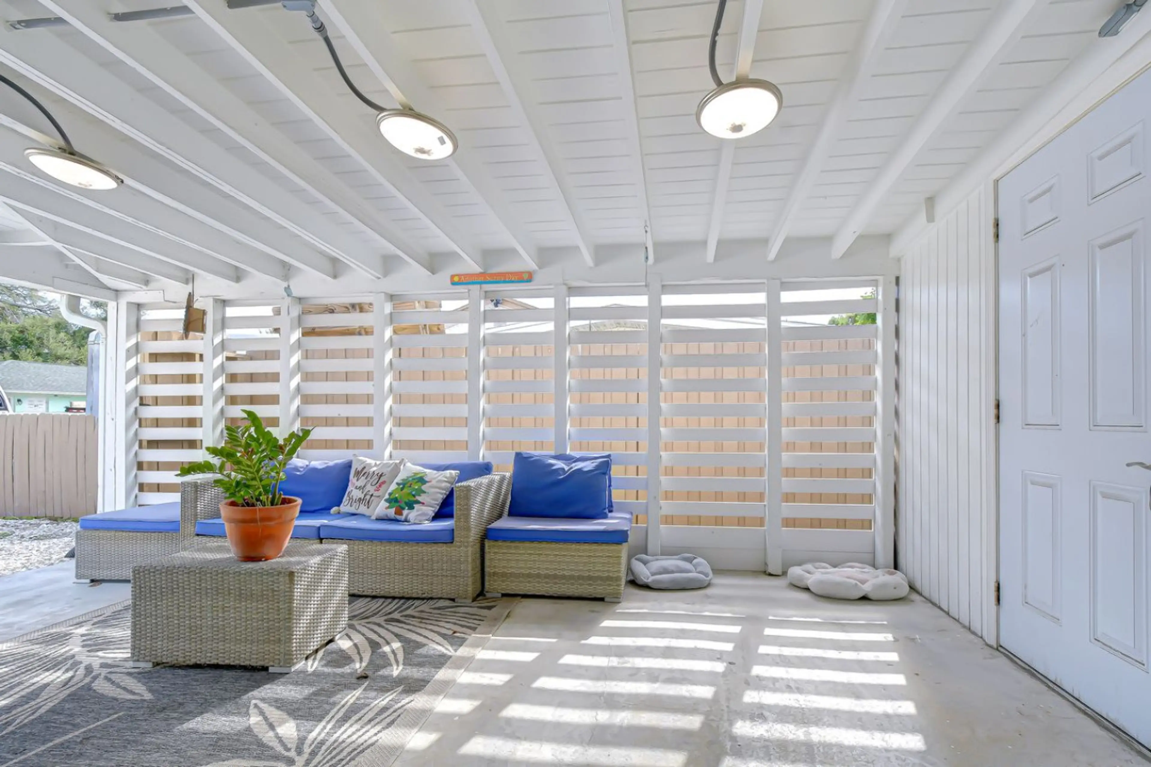 My husband and I stayed at Lady Palm for two nights. The house is clean and modern with a large updated bathroom. The layout is quirky (which I like). Plenty of closet space for a longer stay. Having an outdoor space is important to us, and this property had outdoor space in front and a private area in back. The bed is comfortable and overall a relaxing home.
